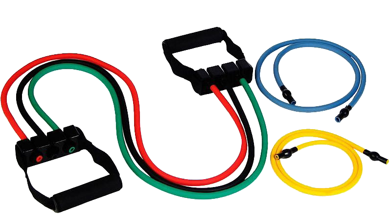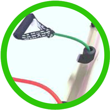 3 Resistance Bands with Foam-Padded Handles Mounted on the Side of the FitPOD